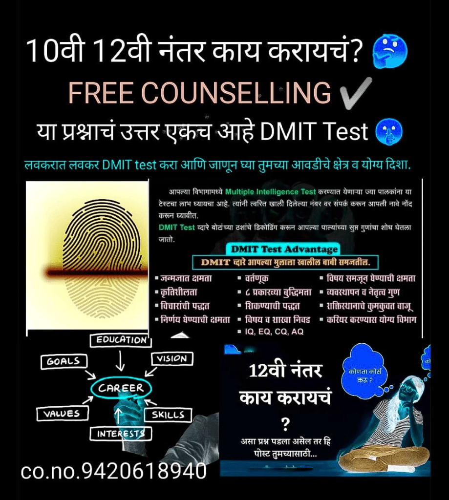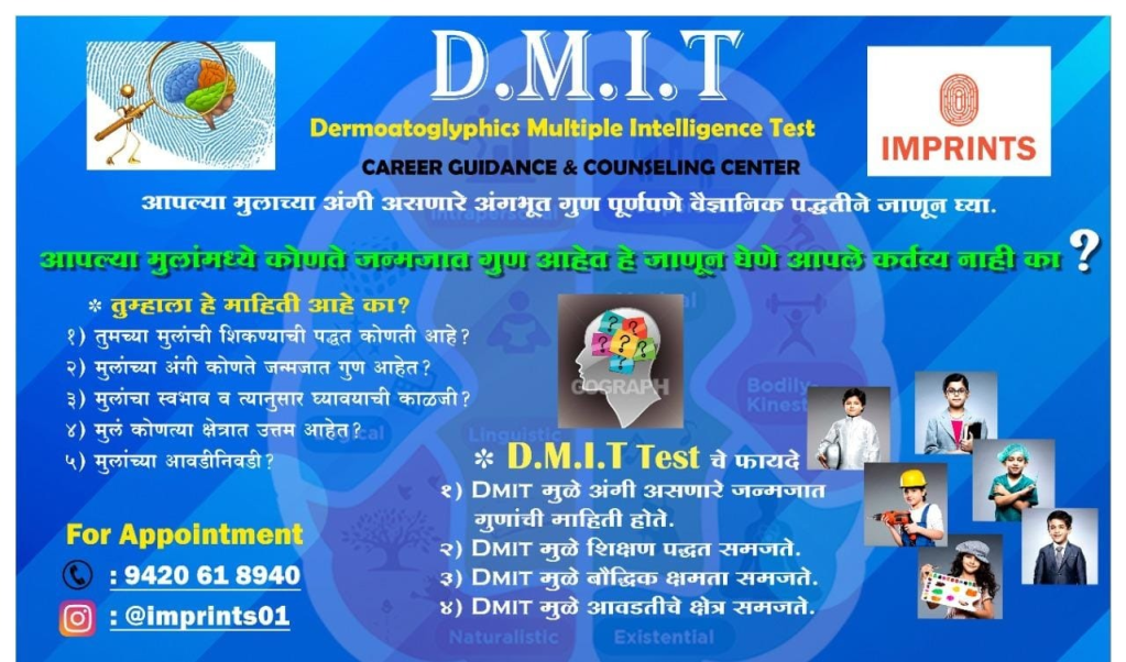 डीएमआयटी या चाचणीमध्ये तुमच्या हाताच्या बोटांच्या या पेरांचे ठसे स्कॅन करून घेतले जातात, ते संगणकाच्या माध्यमातून मूळ सॉफ्टवेअरकडे पाठविले जातात. तिथे यावरून एक सुमारे 32 रंगीत पानांचा रिपोर्ट तयार होतो जो आपल्याकडे पाठविला जातो. या रिपोर्टवरून कदाचित सगळ्यांनाच समजेल असे नाही. त्यामुळे या रिपोर्टमध्ये आलेल्या आपल्या दहा कौशल्यांपैकी कोणत्या कौशल्याच्या आधारे आपले व्यक्तिमत्त्व खुलवू शकता, कोणत्या शाखेची निवड आपण करू शकता अशा विविध पैलूंना समजावून सांगण्यासाठी रीतसर प्रशिक्षण घेतलेल्या तज्ज्ञाकडून किमान एक तासाचे समुपदेशन मिळते. हेच समुपदेशन आपल्या भावी आयुष्यात खूप उपयुक्त ठरते.