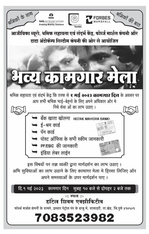 ऐसे ही हम मजदूरौ के हित के लिये 1 मई 2023 को आजीविका ब्युरो के तरफ से भव्य कामगार मेला आयोजित किया है.
